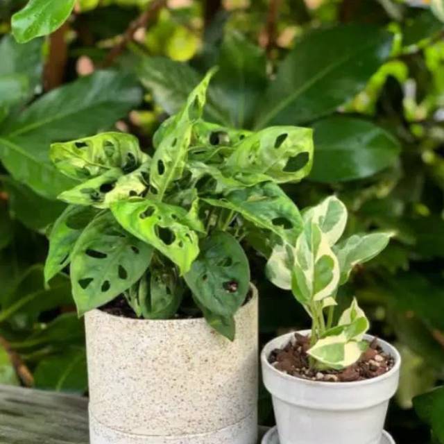 Paket 2 tanaman hias monstera janda bolong dan sirih gading variegatarp40 000.